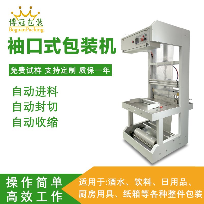 按自動化程度分類:可分為半自動袖口式熱收縮包裝機和全自動袖口式熱收縮包裝機。半自動需人工輔助完成產品放置或封口操作,適用于中小規模生產;全自動則自動化完成輸送、封切、收縮等全流程,適合大規模生產。