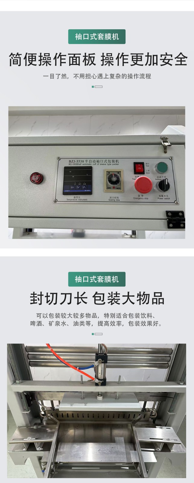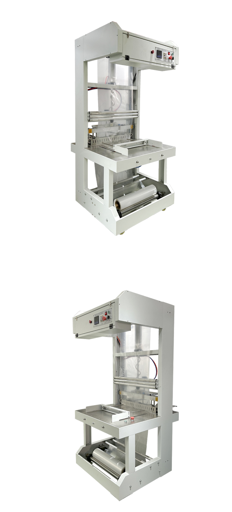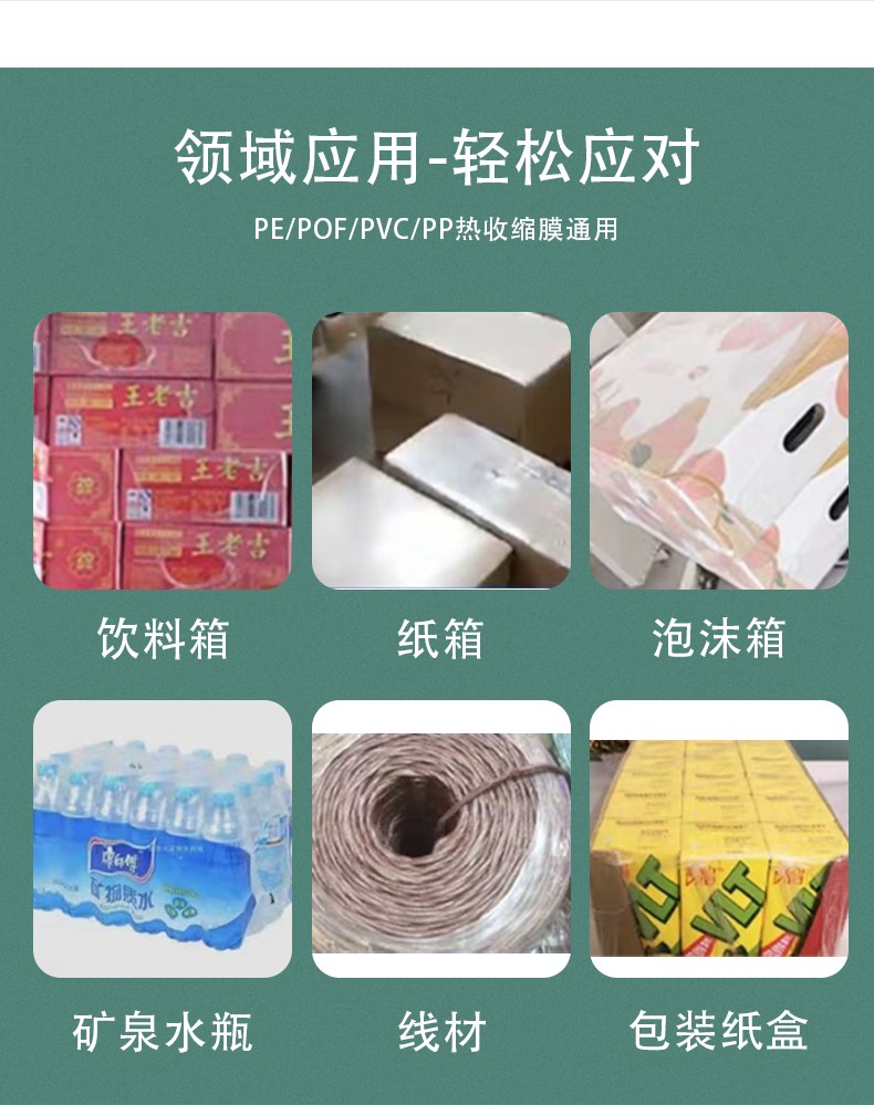 通過 PLC 控制系統與觸控屏,可精準調節封切溫度(50-300℃可調)、收縮時間(0.5-5 秒可調)及膜材張力,適配不同厚度(0.02-0.2mm)的 PE/POF 膜,避免膜材斷裂、收縮不均等問題。